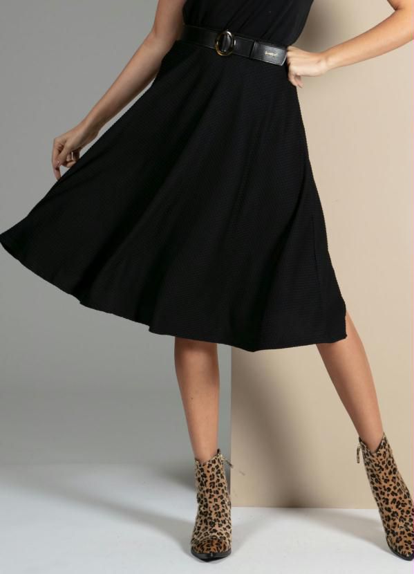 A Saia Midi Preta Evasê com Elástico na Cintura é a queridinha das mulheres que adoram moda e estilo. Com tênis de dia ou uma bota de salto alto à noite, você pode ter um visual moderno e cheio de atitude.